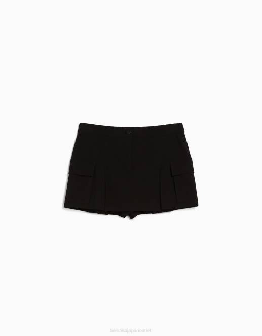 女性 Bershka ポケット付きテーラードカーゴスコート 60441367 衣類 黒