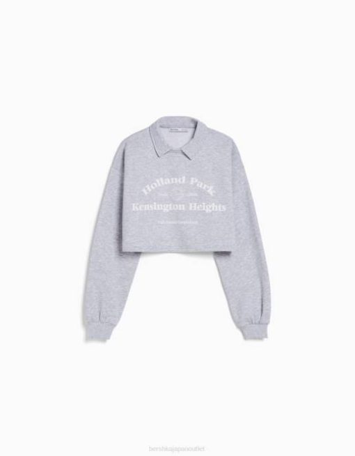 女性 Bershka ポロカラー付きプリントスウェットシャツ 60441261 衣類 グレー