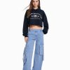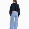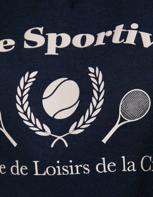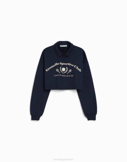 女性 Bershka ポロカラー付きプリントスウェットシャツ 60441258 衣類 海軍
