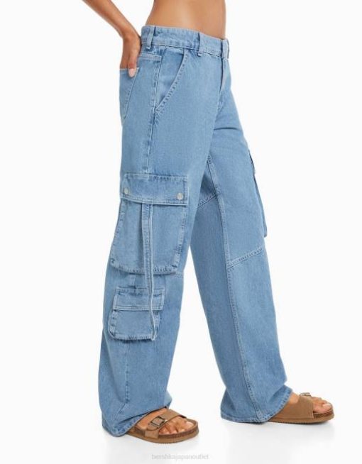 女性 Bershka マルチポケット カーゴジーンズ 60441290 衣類 ライトブルー