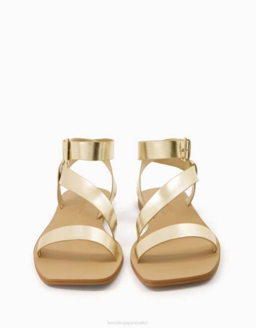 女性 Bershka メタリックストラップフラットスライダーサンダル 60442228 履物 金