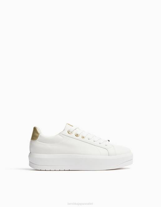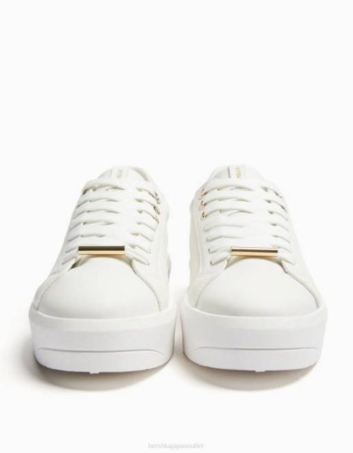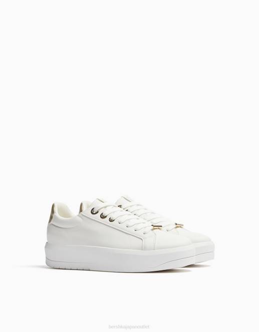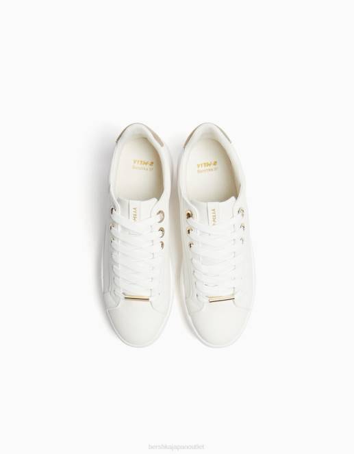 女性 Bershka メタリックディテールのプラットフォームスニーカー 60442090 履物 白