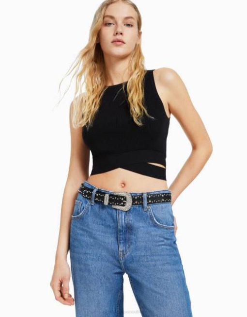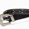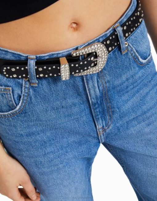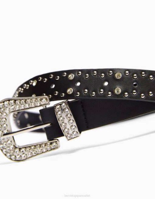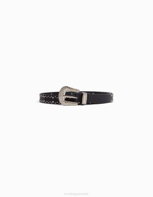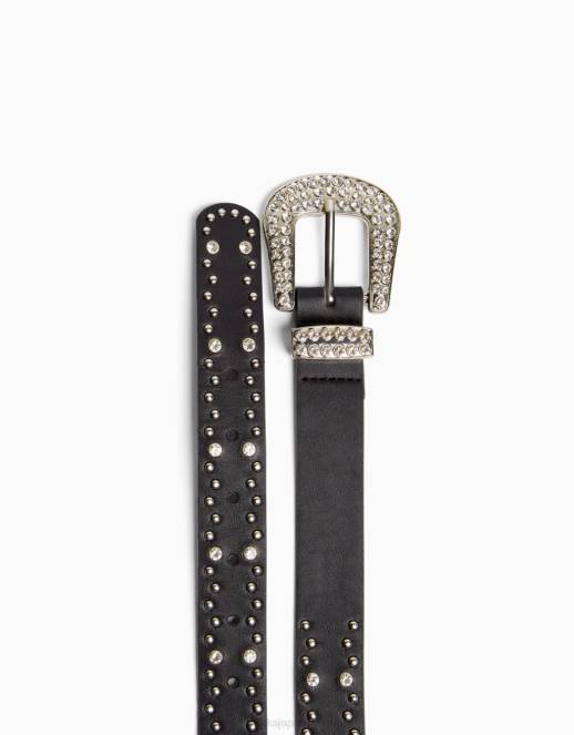 女性 Bershka ラインストーン付きスタッズベルト 60442538 アクセサリー 黒