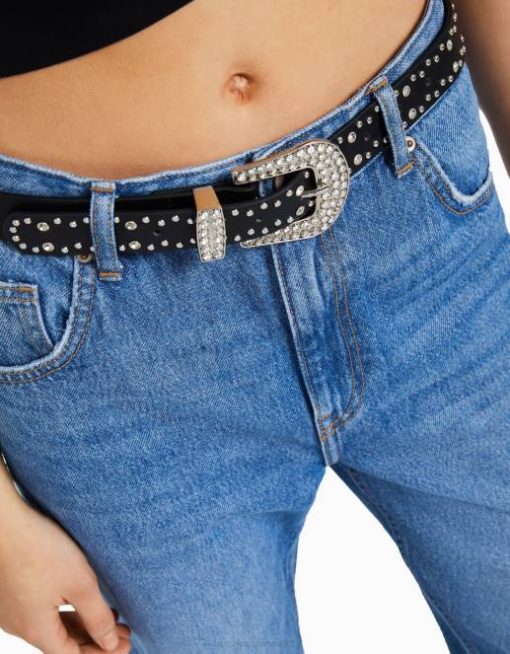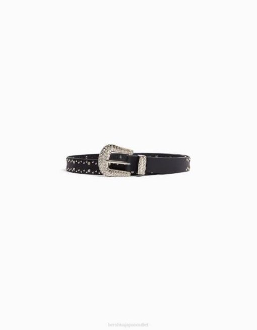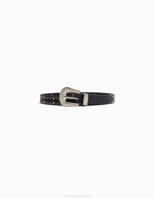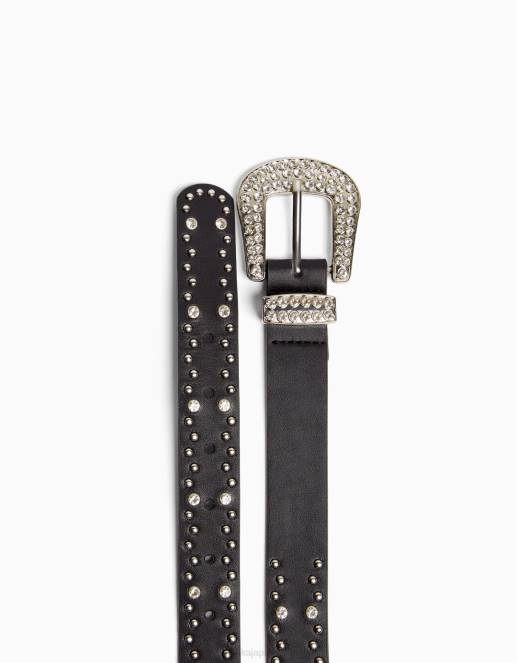 女性 Bershka ラインストーン付きスタッズベルト 60442539 アクセサリー 洗わないでください