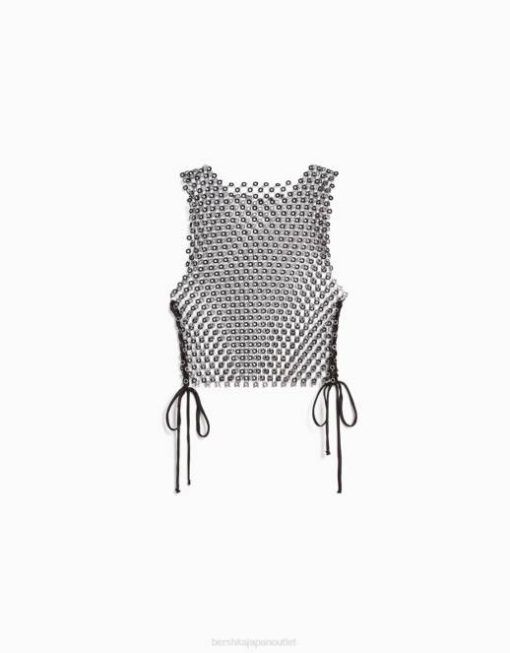 女性 Bershka ラインストーン付きノースリーブTシャツ 60441861 衣類 黒