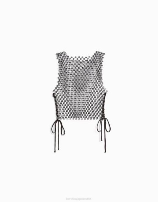 女性 Bershka ラインストーン付きノースリーブTシャツ 6044463 衣類 黒