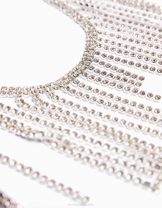 女性 Bershka ラインストーン カスケード ブラレット 6044808 衣類 銀