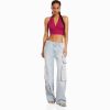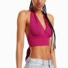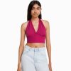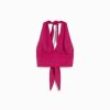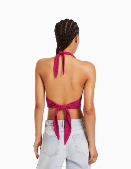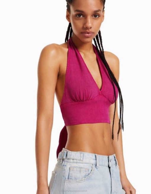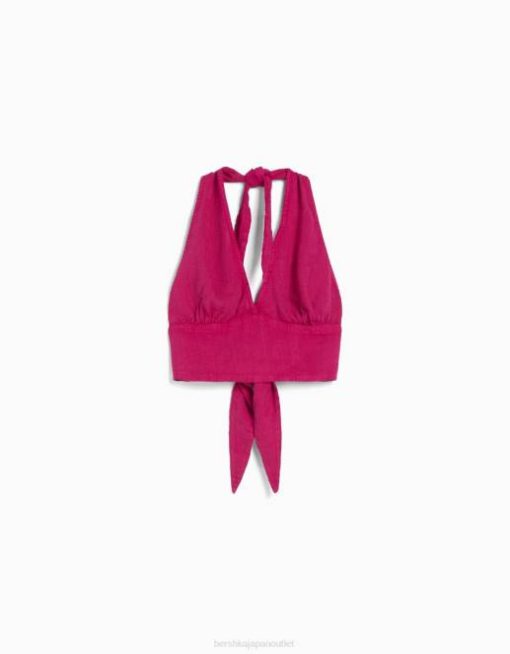 女性 Bershka ラスティックなリネンブレンドクロップトップ 6044733 衣類 フクシア