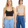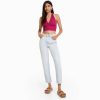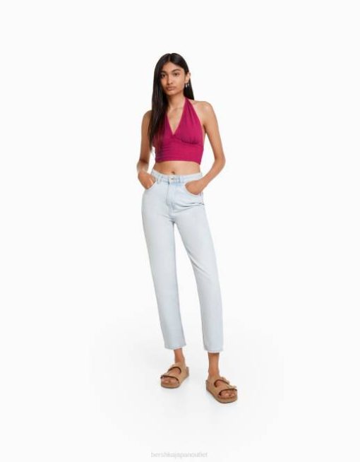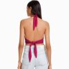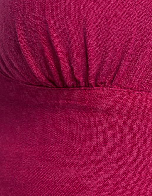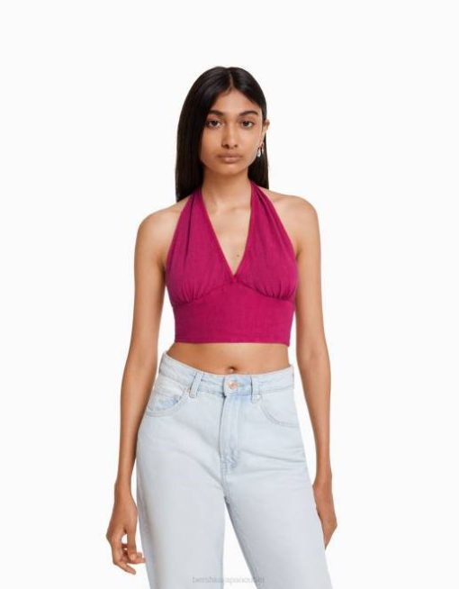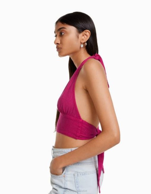 女性 Bershka ラスティックなリネンブレンドクロップトップ 6044732 衣類 フクシア
