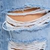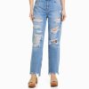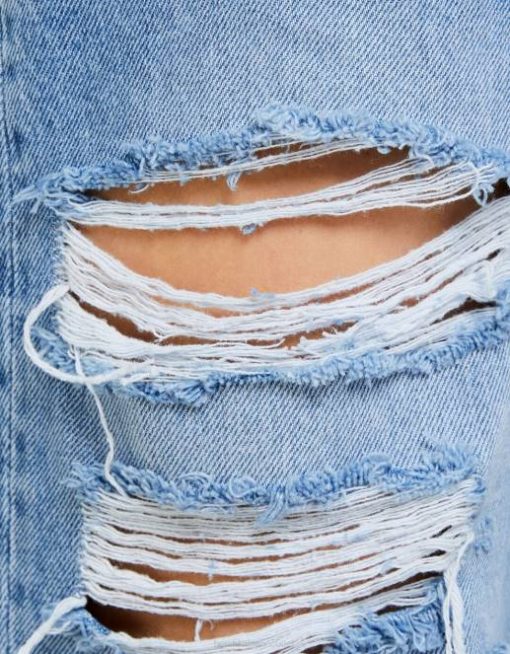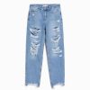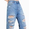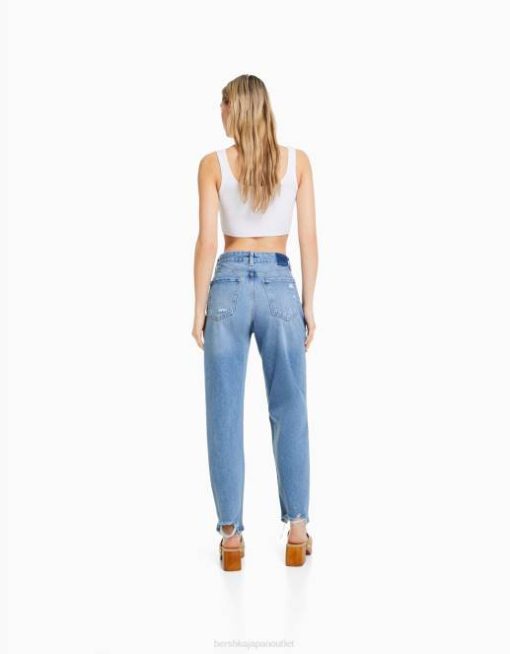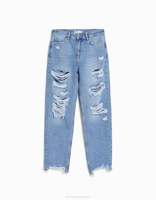 女性 Bershka リップド クロップド ストレートレッグ ママ ジーンズ 60441571 衣類 ライトブルー