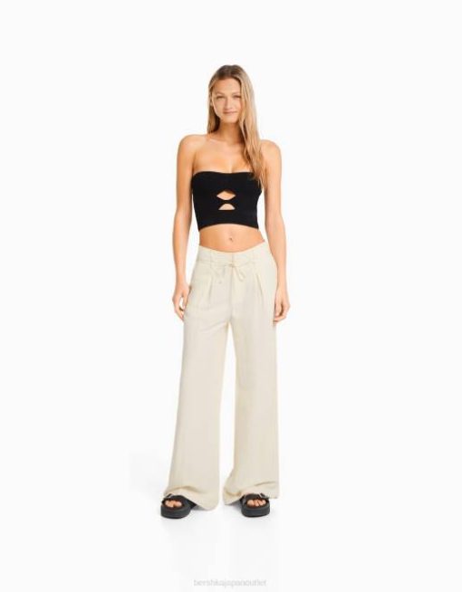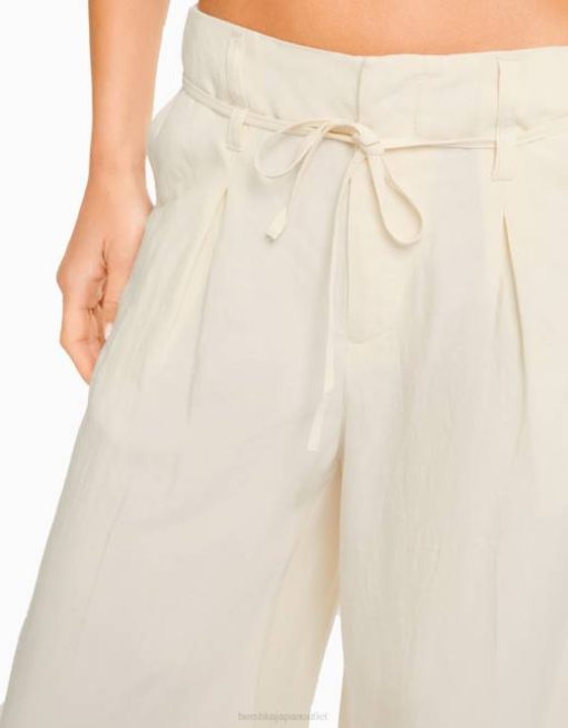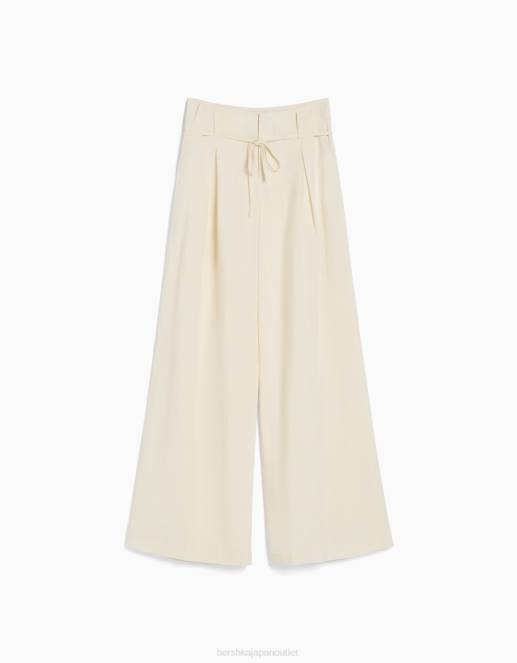 女性 Bershka リネン混ワイドレッグパンツ 60441418 衣類 クリーム