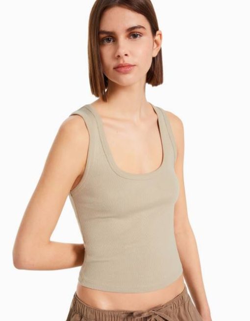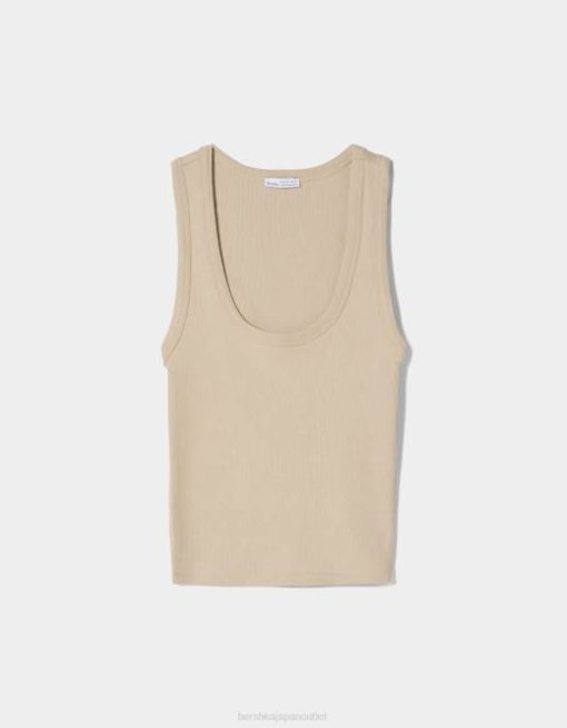 女性 Bershka リブタンクトップ 6044314 衣類 ベージュ