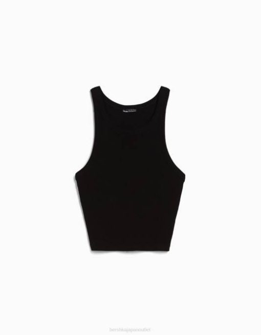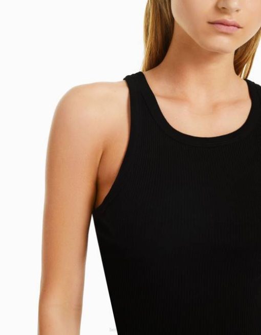 女性 Bershka リブタンクトップ 6044333 衣類 黒