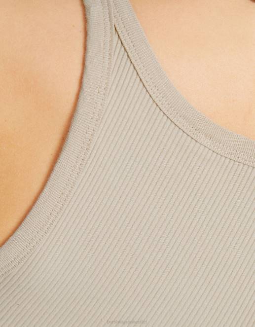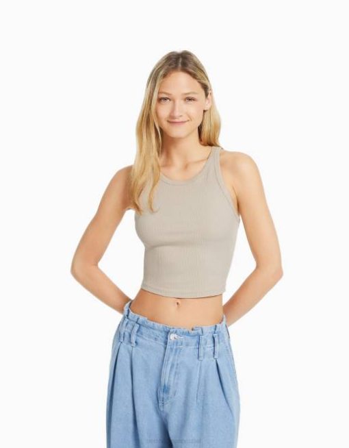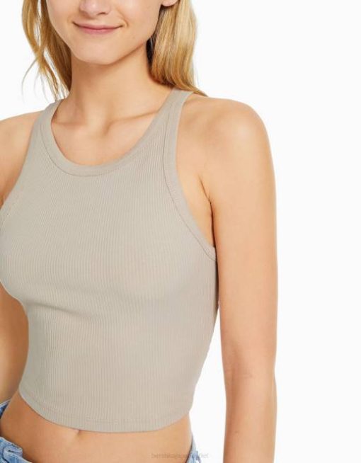 女性 Bershka リブタンクトップ 6044335 衣類 ベージュ