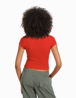 女性 Bershka リブタンクトップ 6044418 衣類 赤