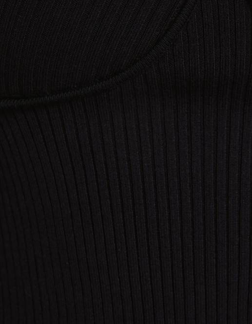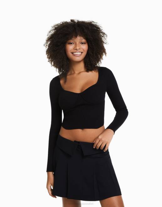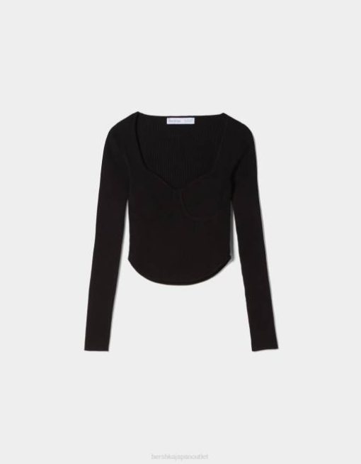 女性 Bershka リブニット コルセットスタイル トップ 60441017 衣類 黒