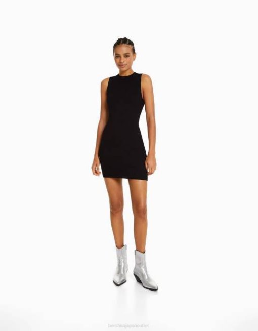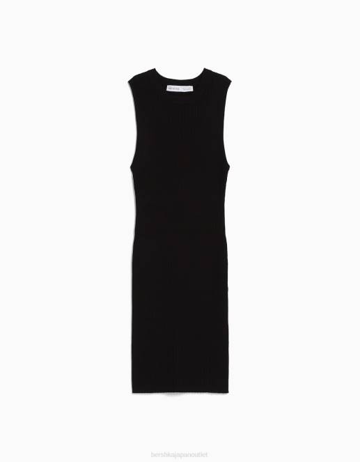 女性 Bershka リブニット ミニドレス 6044243 衣類 黒