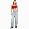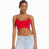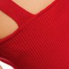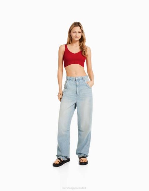 女性 Bershka リブニット Vネックトップ 6044778 衣類 赤