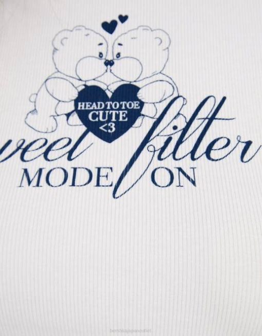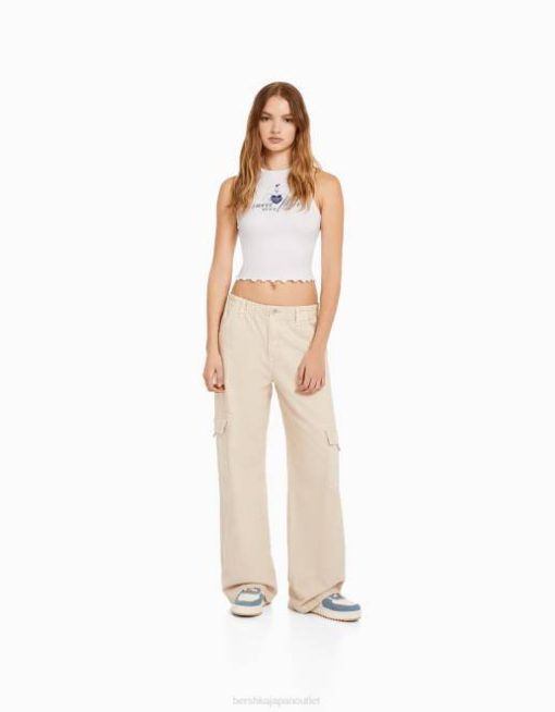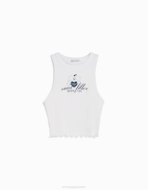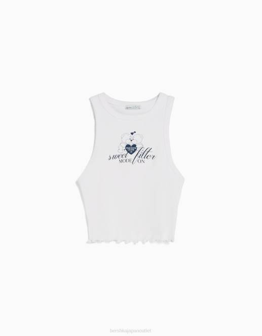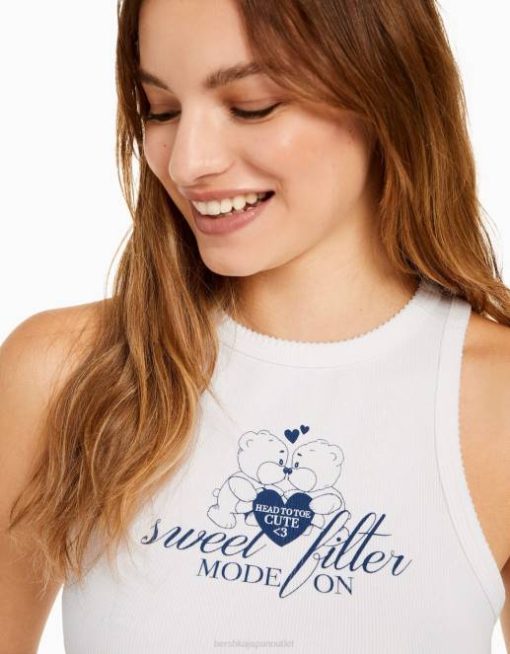 女性 Bershka リブプリント ノースリーブ Tシャツ 6044629 衣類 オフホワイト