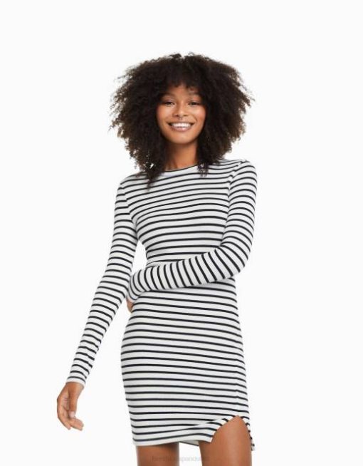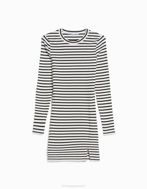 女性 Bershka リブロングスリーブ リブミニドレス 6044235 衣類 オフホワイト