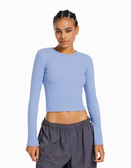 女性 Bershka リブロングスリーブTシャツ 6044575 衣類 エクスクルーシブ