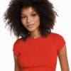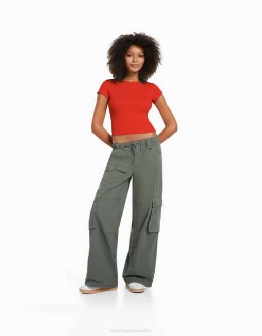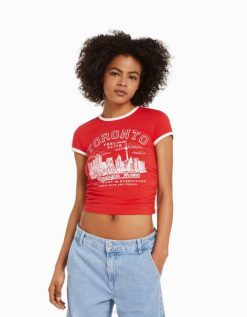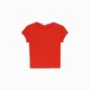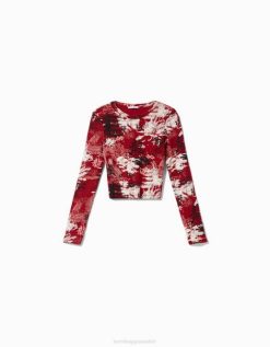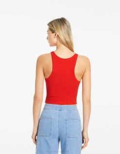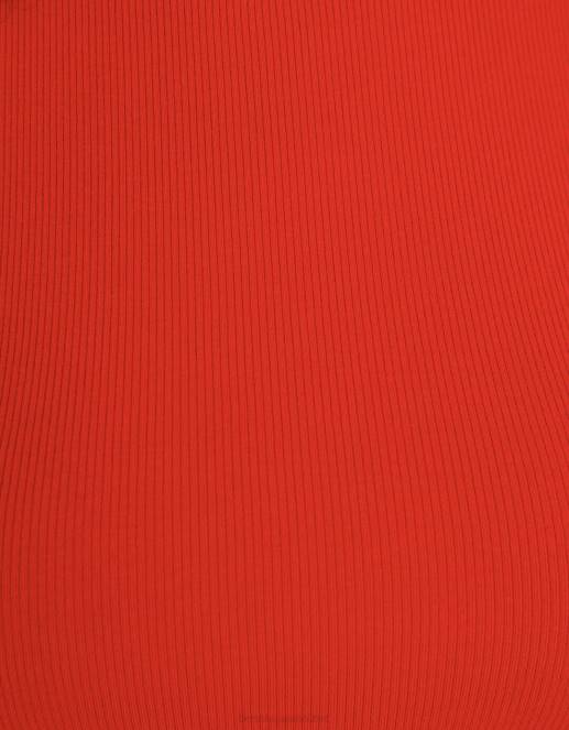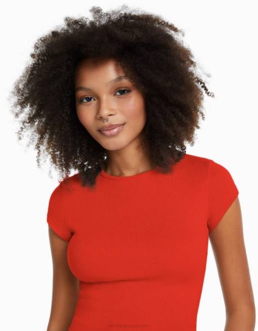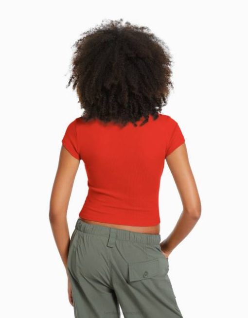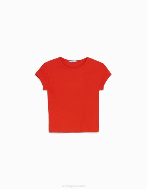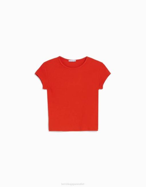 女性 Bershka リブ半袖Tシャツ 6044351 衣類 赤