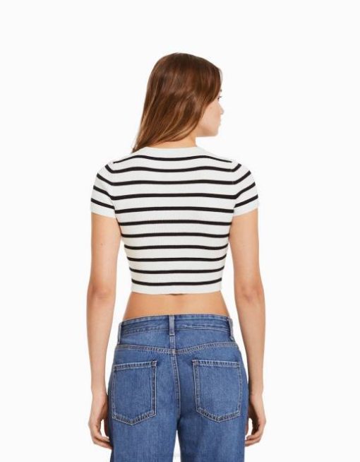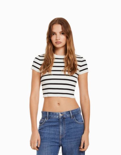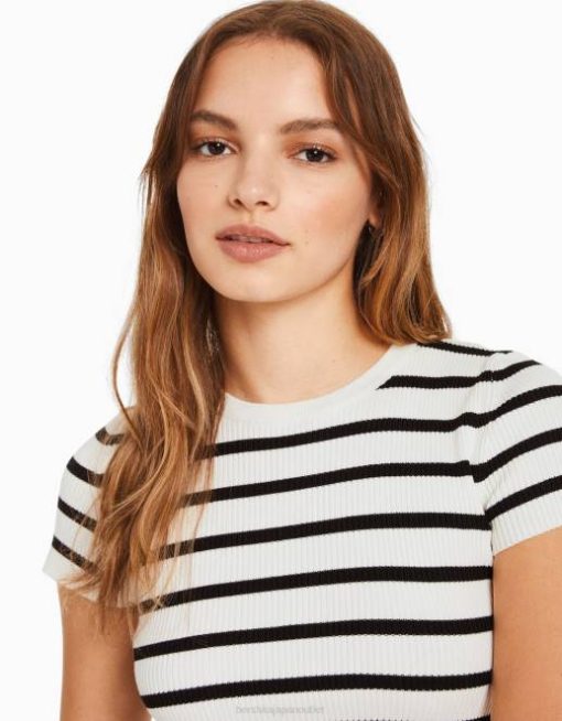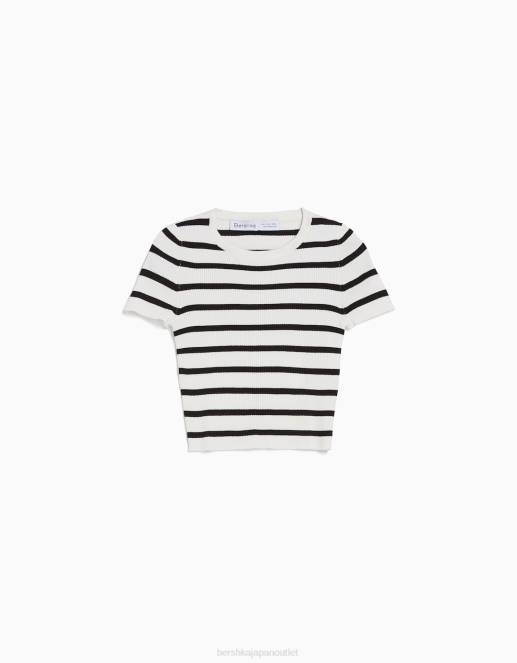 女性 Bershka リブ編み半袖セーター 6044611 衣類 クリーム