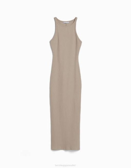女性 Bershka リブ ノースリーブ ミディドレス 60444 衣類 砂