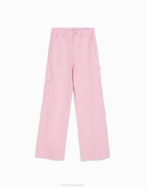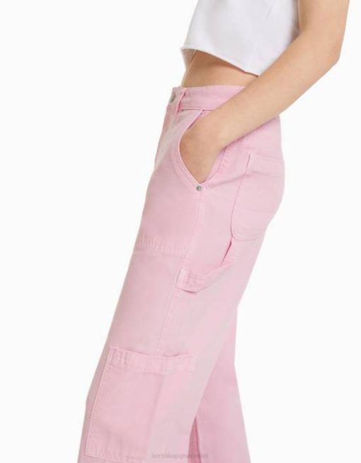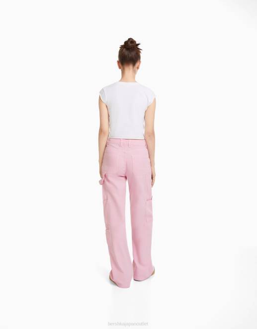 女性 Bershka リラックスフィット キャンバス カーペンター パンツ 60441319 衣類 ピンク