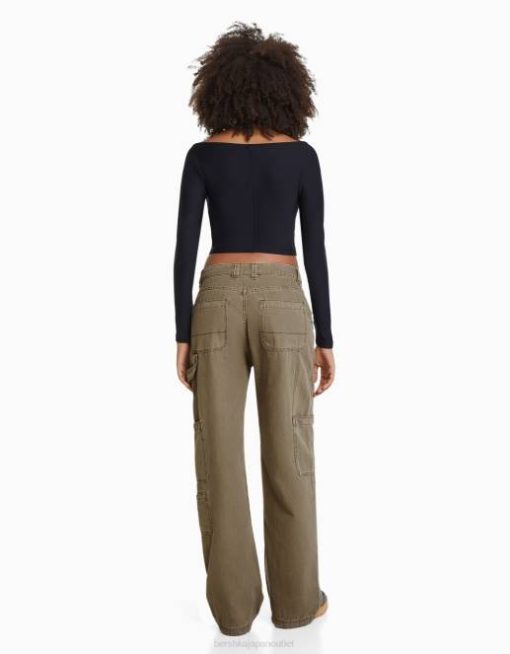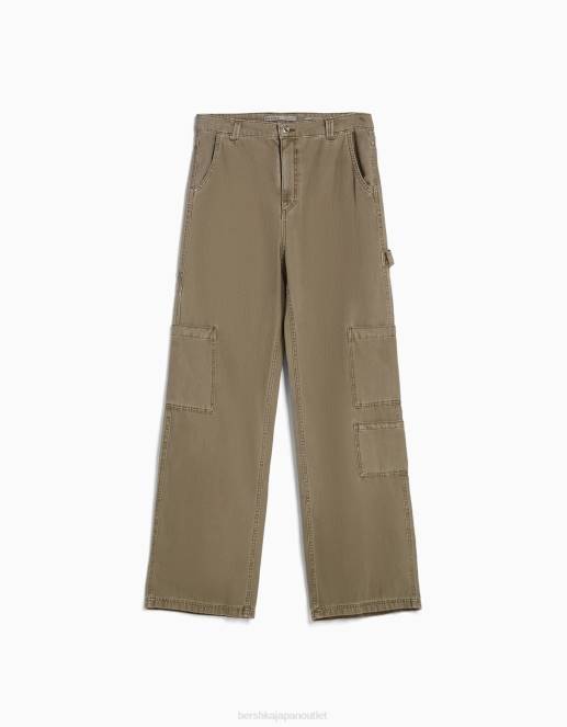 女性 Bershka リラックスフィット キャンバス カーペンター パンツ 60441320 衣類 カーキ
