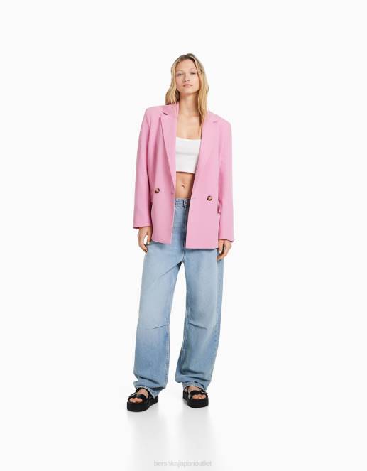 女性 Bershka レギュラーフィット テーラード フェミニンカット ダブルブレスト ブレザー 60441185 衣類 ピンク
