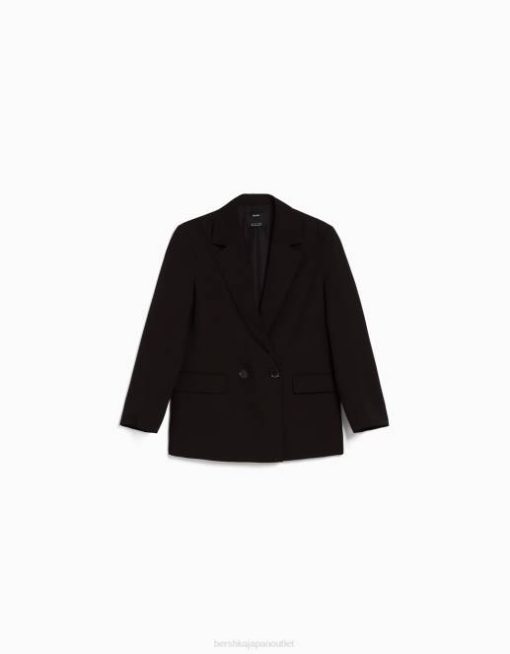 女性 Bershka レギュラーフィット テーラード フェミニンカット ダブルブレスト ブレザー 60441193 衣類 黒