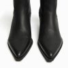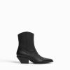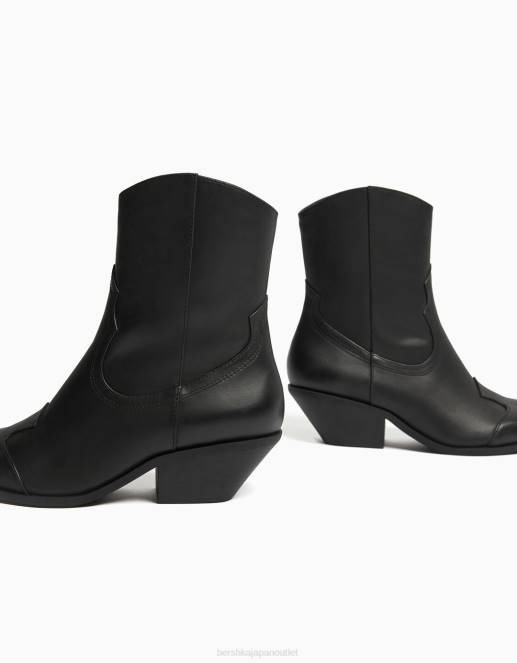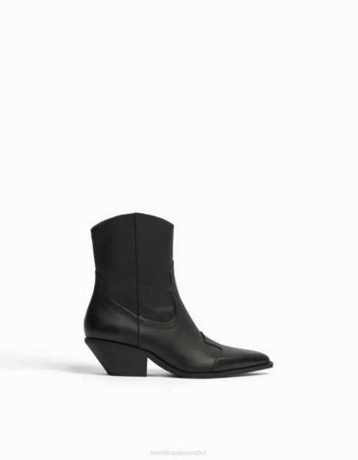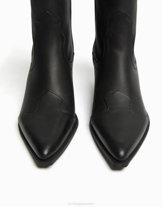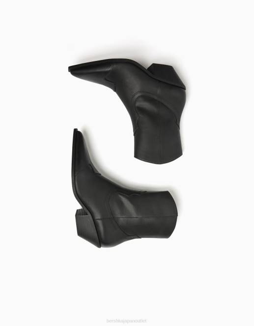 女性 Bershka レザーカウボーイハイヒールアンクルブーツ 60442276 履物 黒