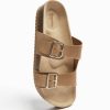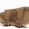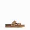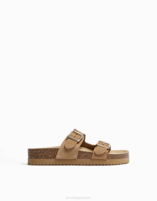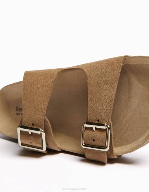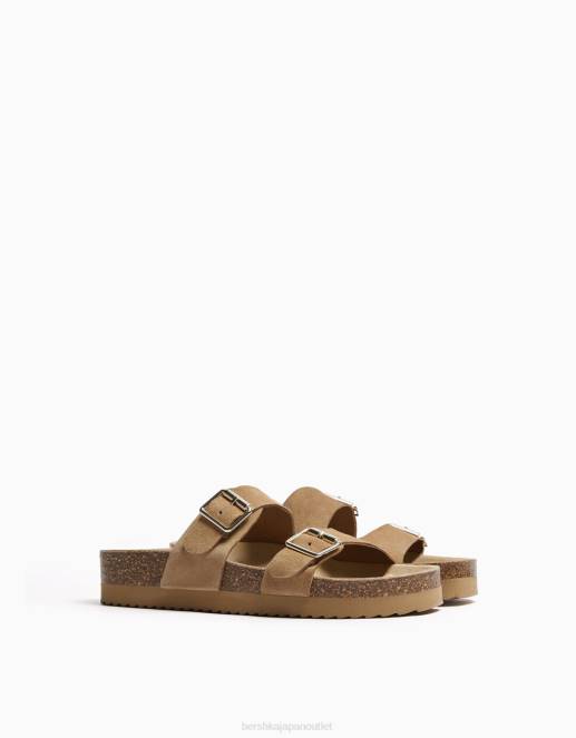 女性 Bershka レザーバックルフラットスライダーサンダル 60442226 履物 砂