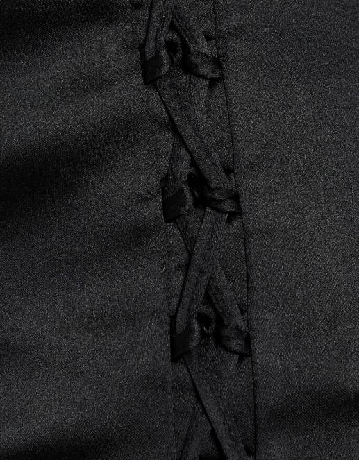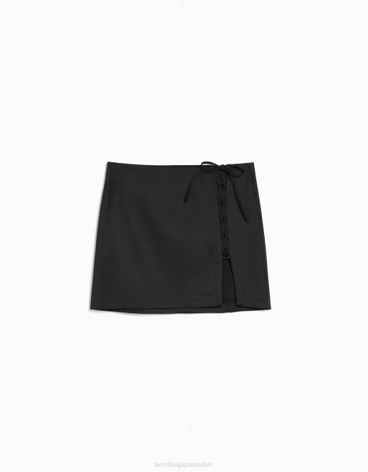 女性 Bershka レースアップサテンミニスカート 60441666 衣類 黒