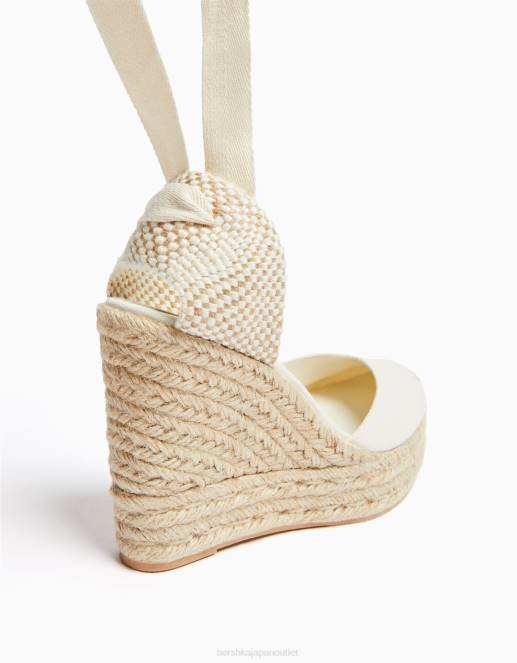 女性 Bershka レースアップジュートウェッジ 60442200 履物 生成り