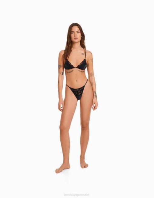 女性 Bershka レース三角ブラジャー 60441744 衣類 黒