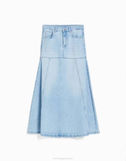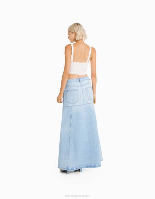 女性 Bershka ロングデニムスカート 60441624 衣類 ライトブルー