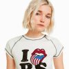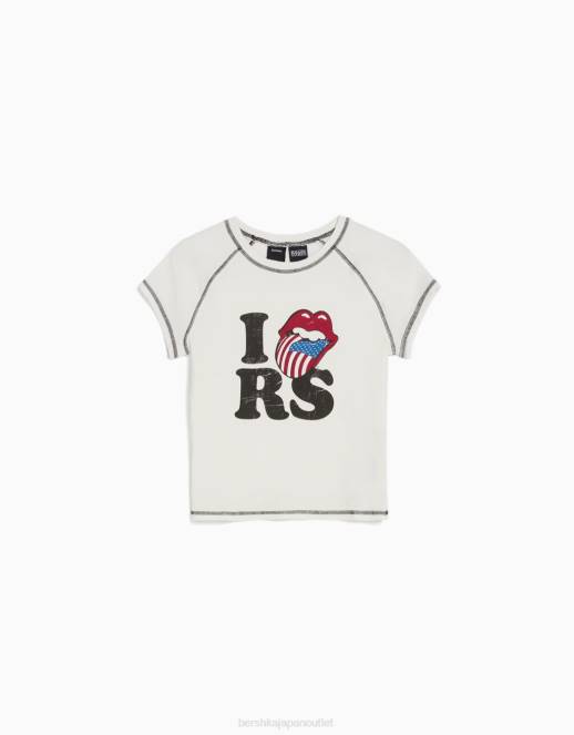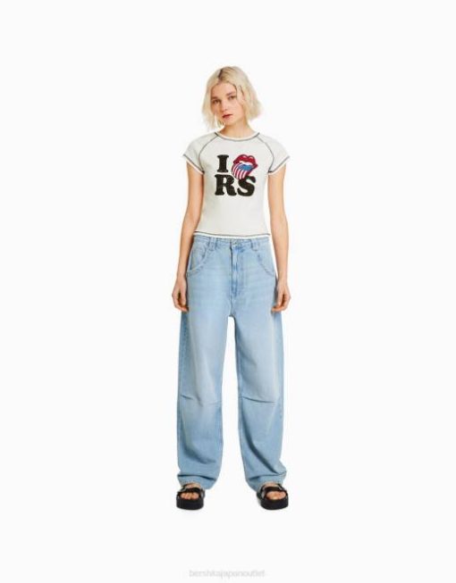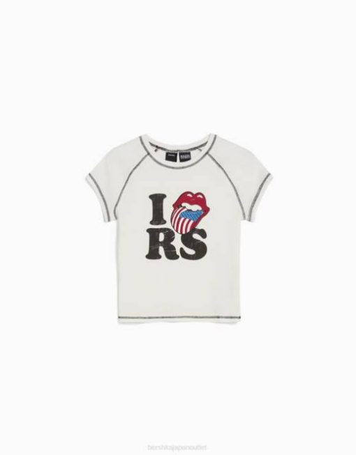 女性 Bershka ローリング ストーンズ プリント リブ半袖 T シャツ 6044514 衣類 クリーム