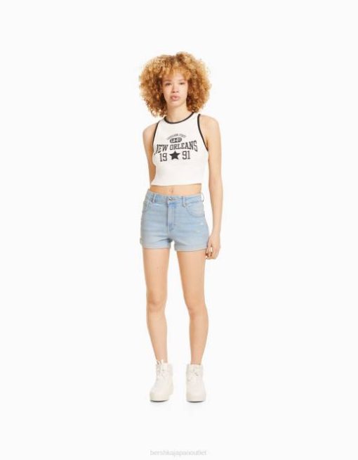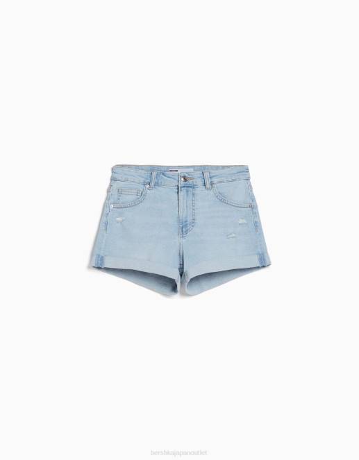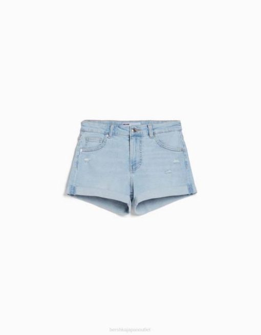 女性 Bershka ロールアップデニムショートパンツ 60441726 衣類 ライトブルー