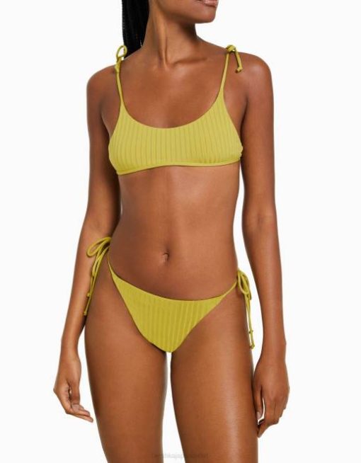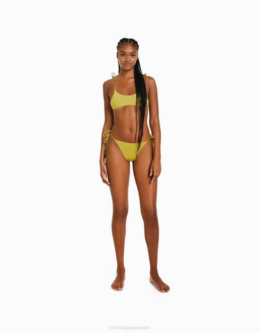 女性 Bershka ワイドリブビキニボトムス 60441807 衣類 緑