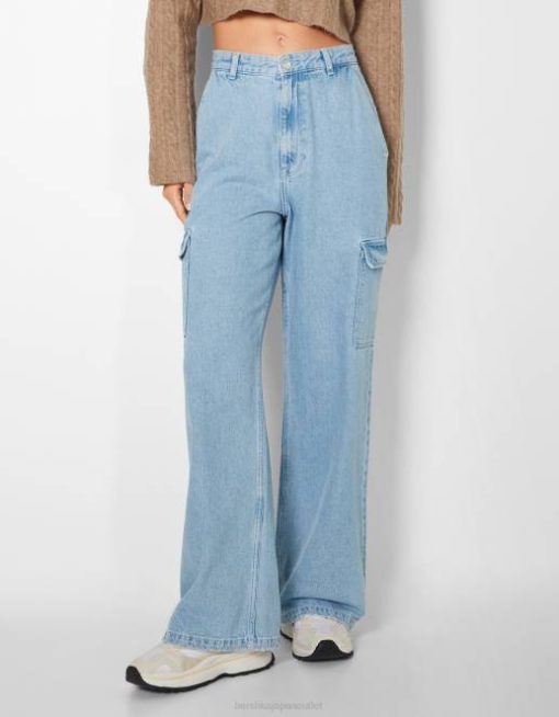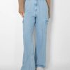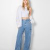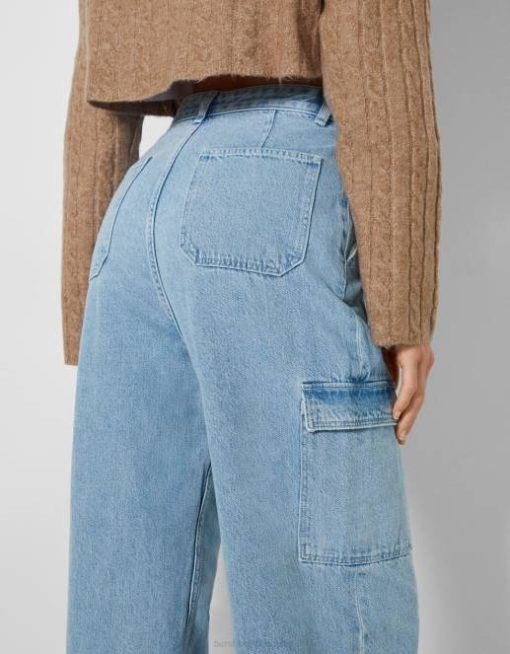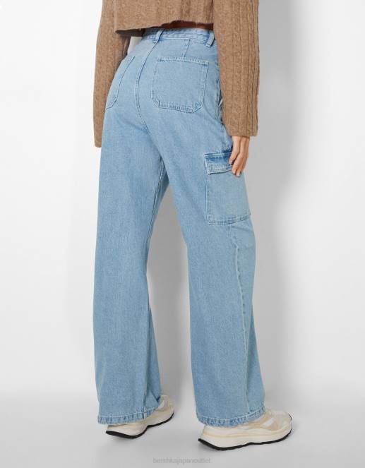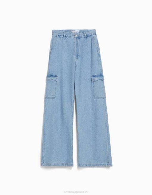 女性 Bershka ワイドレッグ カーゴジーンズ 60441339 衣類 ライトブルー