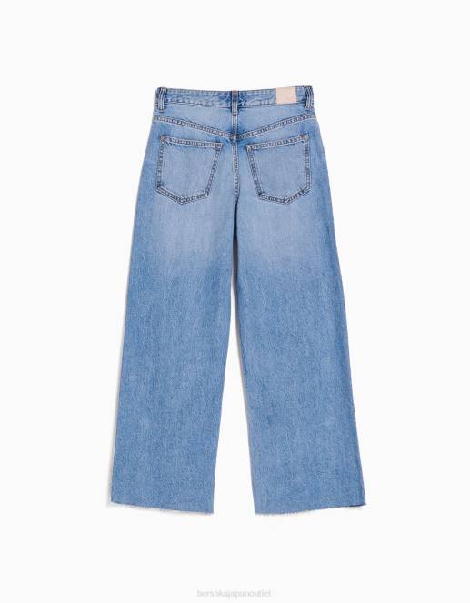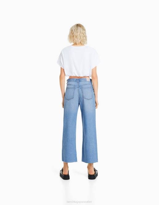 女性 Bershka ワイドレッグ クロップドジーンズ 60441516 衣類 ライトブルー