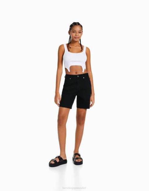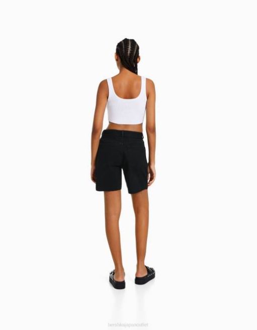 女性 Bershka ヴィンテージデニムバミューダショーツ 60441691 衣類 黒