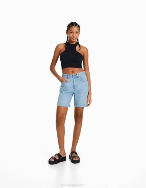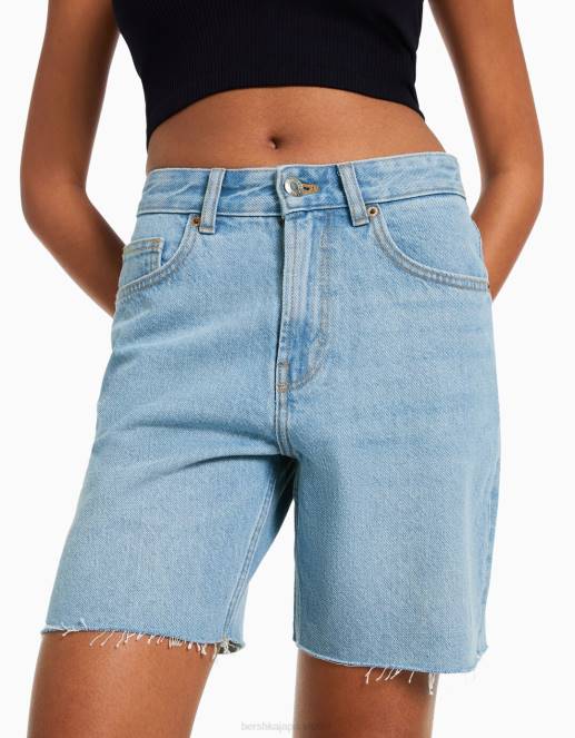 女性 Bershka ヴィンテージデニムバミューダショーツ 60441705 衣類 ライトブルー