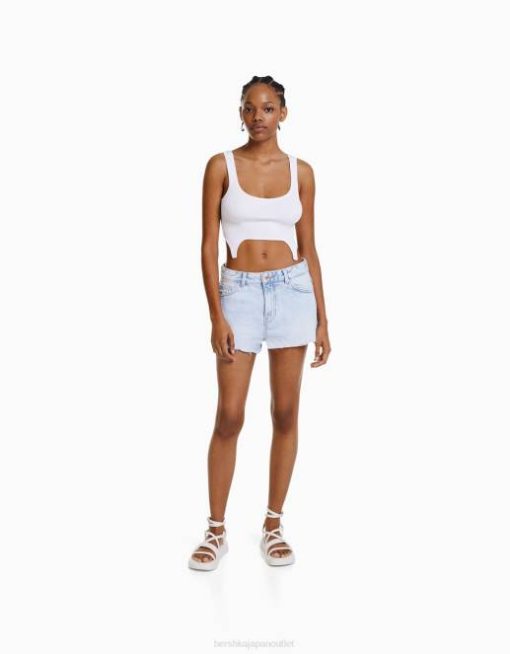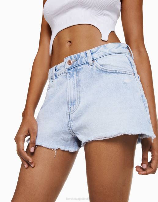 女性 Bershka ヴィンテージ リップド デニム ショートパンツ 60441719 衣類 ライトブルー