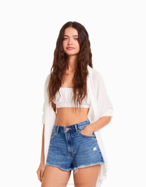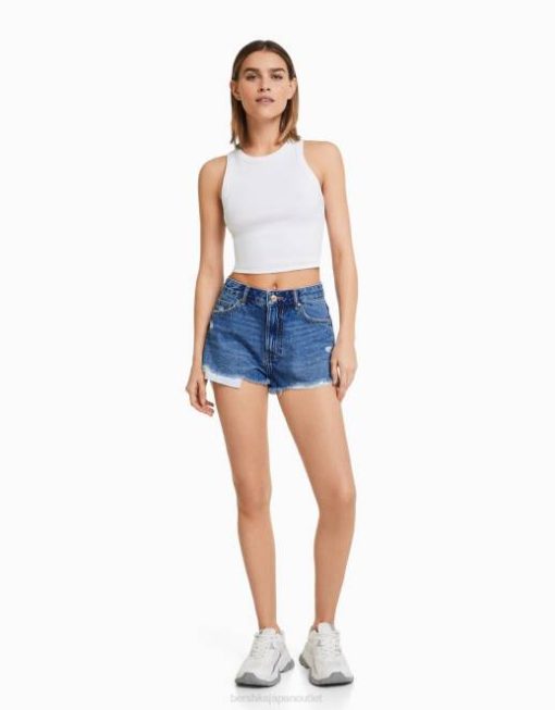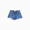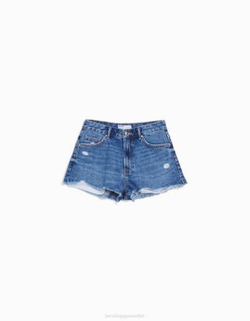 女性 Bershka ヴィンテージ リップド デニム ショートパンツ 60441720 衣類 青