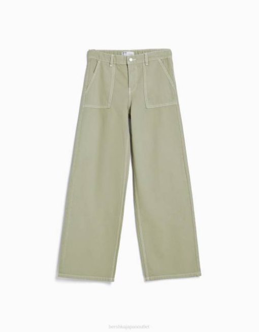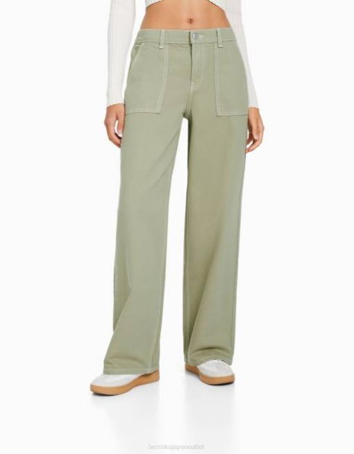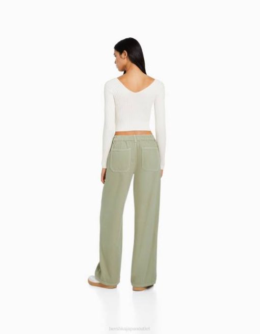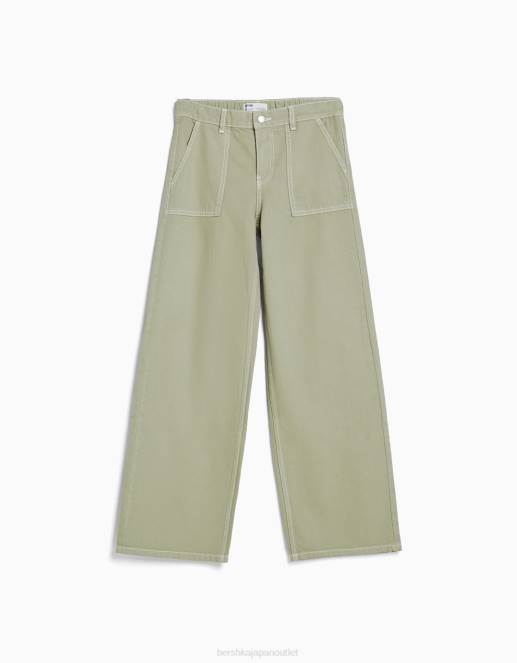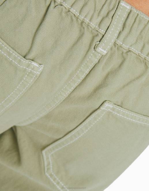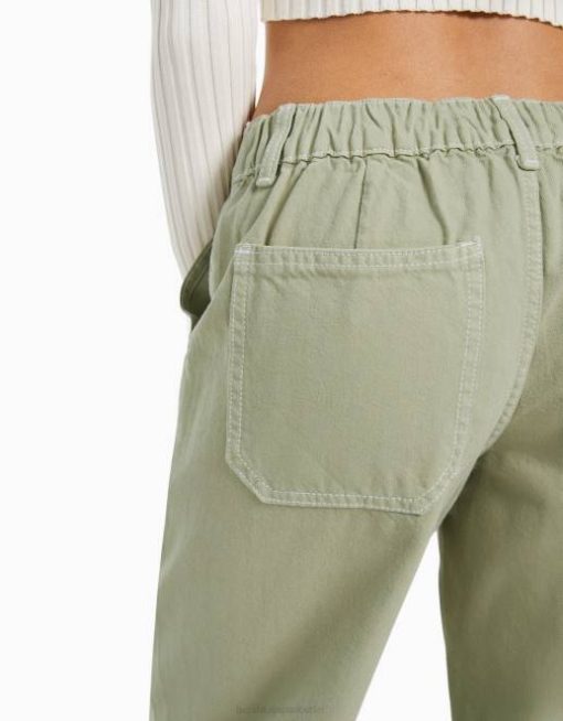 女性 Bershka 伸縮性のあるウエストバンドとポケットが付いた 90 年代のジーンズ 60441566 衣類 カーキ