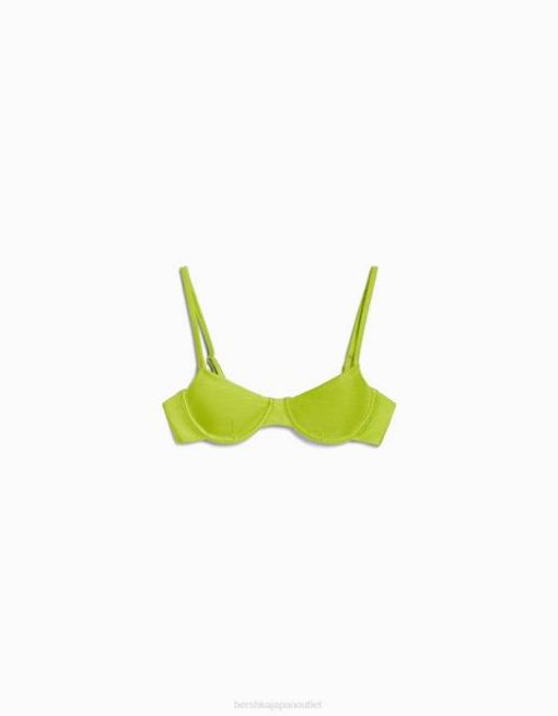 女性 Bershka 光沢のあるアンダーワイヤービキニトップ 60441822 衣類 緑