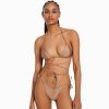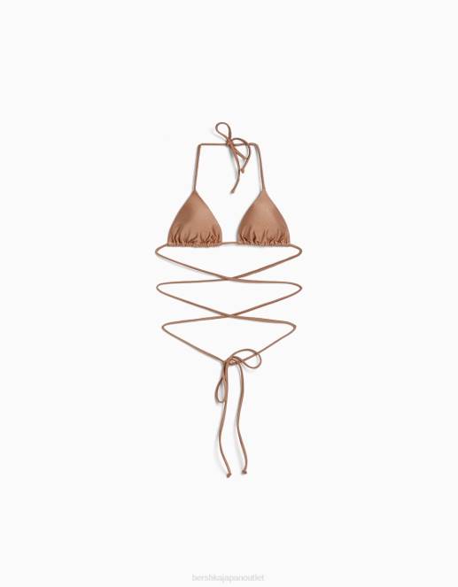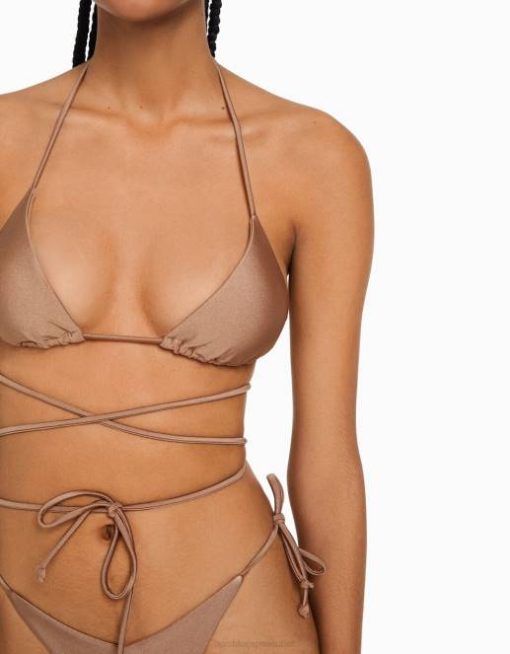 女性 Bershka 光沢のあるビキニトップ 60441776 衣類 茶色